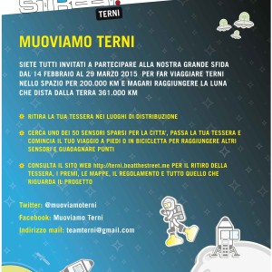 Arriva così per la prima volta anche in Italia la gara che a livello mondiale promuove il movimento (cammino, ciclismo, corsa), che ha riscosso importanti successi in Europa e nel mondo. A Terni, più di venti squadre, create da istituzioni, scuole e associazioni, hanno già aderito alla sfida verso la luna, proponendosi di raggiungere oltre 200.000 km. La squadra che guadagnerà più punti vincerà un premio in denaro e potrà aiutare Terni ad “arrivare sulla Luna”.
