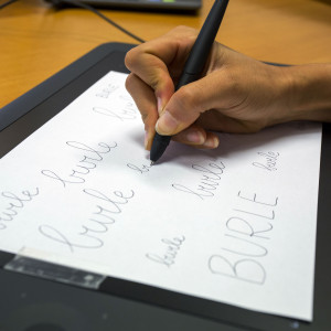 La ricerca ha coinvolto 77 bambini con un’età fra i 7 anni e mezzo e i 12 anni: 17 bambini con una diagnosi di dislessia evolutiva, 21 bambini con una diagnosi sia di dislessia sia di disgrafia e 39 bambini a sviluppo tipico (ovvero senza diagnosi di dislessia o disgrafia). Ai partecipanti è stato chiesto di scrivere a mano con un’apposita penna digitale la parola b-u-r-l-e in diverse condizioni sperimentali (in modo spontaneo, usando lettere maiuscole, accelerando la velocità di scrittura o cambiando le dimensioni) su un foglio appoggiato su una tavoletta grafica.