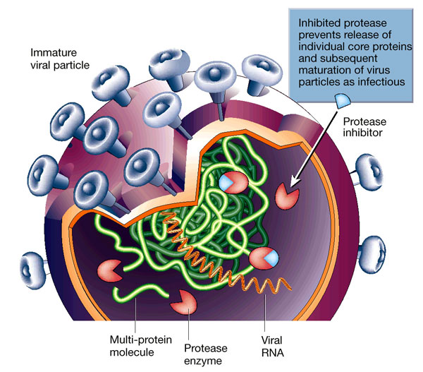 Gli inibitori della proteasi raggiungono il sito in cui questa forbice taglia la catena polipeptidica, inibendone la funzione e interrompendola, col risultato di ridurre notevolmente la replicazione del virus.