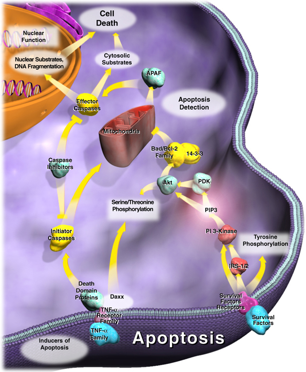 Questo processo di morte cellulare può essere attivato dalle proteine di superficie della cellula. La più importante di queste proteine superficiali è il ligando del Fas, che esiste in due versioni: legata alla membrana e secreta.