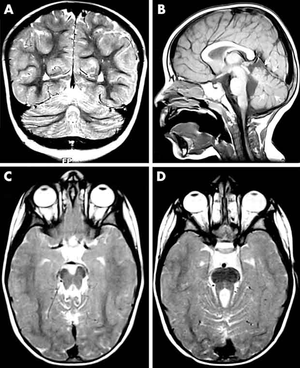 La sindrome di Joubert è un raro disturbo genetico che interessa il verme cerebellare, la parte del cervello che controlla la coordinazione dei muscoli, l’equilibrio e il movimento. Nella sindrome di Joubert, il cervelletto e il tronco encefalico non si sviluppano correttamente e ciò provoca problemi di controllo dei muscoli. Tra gli altri sintomi ci sono problemi al fegato e ai reni, cecità, handicap mentale lieve o moderato e malformazioni ossee come labbro leporino o palatoschisi o polidattilia.