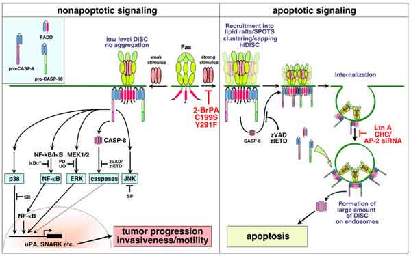Ora i ricercatori intendono identificare “l’interruttore” che evidentemente permette a CD95 di passare d una funzione di recettore per l’apoptosi a quella di recettore per la crescita. Un candidato a questo ruolo è la chinasi JNK, della quale si sa che a differenti concentrazioni ha la capacità di stimolare sia la crescita sia la morte cellulare.