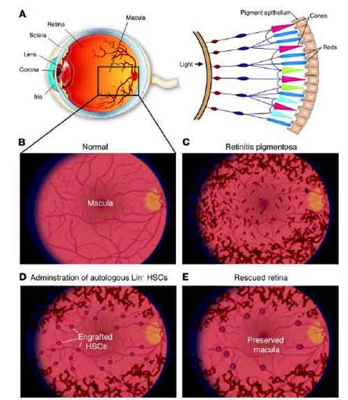 La malattia porta inizialmente alla degenerazione dei bastoncelli, che sono responsabili della visione notturna. Via via che progredisce, coinvolge anche i coni, responsabili della visione diurna. Mentre però i bastoncelli vengono distrutti, i coni sopravvivono nell’organismo per lunghi periodi, anche quando ormai è sopraggiunta la cecità. Questa circostanza ha portato i ricercatori del Friedrich Miescher Institute (FMI) e dell’Institut de la Vision a sviluppare una terapia genica per ristabilire la funzione visiva dei coni “dormienti” ma ancora presenti.