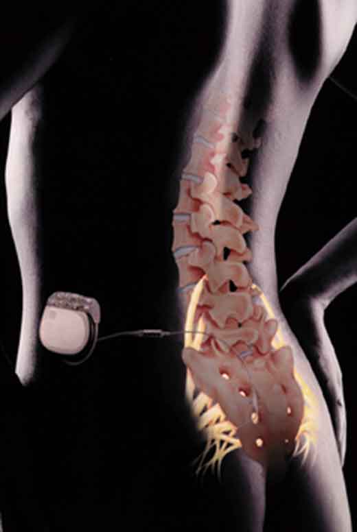 L’approccio terapeutico entrato ormai nella routine è la stimolazione del midollo spinale, che avviene attraverso l’impianto, vicino alla colonna vertebrale, di elettrodi stimolatori che mandano lievi impulsi elettrici allo spazio epidurale. Il dolore infatti “viaggia“ attraverso il sistema nervoso, ma il suo segnale viene modificato prima che pervenga al cervello dagli impulsi elettrici inviati dal neurostimolatore, trasformando la sensazione in un formicolio molto più sopportabile. Gli elettrodi sono collegati ad un dispositivo, delle dimensioni di un orologio e posizionati sottocute nell’addome, che trasmette microscariche prefissate che affievoliscono gli impulsi dolorosi avvertiti dal paziente. Tuttavia, il livello di stimolazione richiesto per la gestione del paziente sofferente dipende dalla distanza tra il midollo spinale e gli elettrodi impiantati e le distanze cambiano a seconda che il paziente sia in piedi, seduto o disteso. Di conseguenza, un qualunque cambiamento di posizione, in assenza di un aggiustamento manuale della stimolazione tramite un telecomando esterno, può far sì che il paziente riceva una stimolazione sub-optimale,che non riduce la sensazione di dolore.