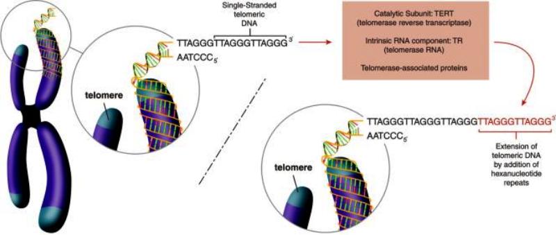 Quando le cellule si dividono i telomeri tendono ad accorciarsi sempre di più fino a causare, quando diventano troppo corti, l’impossibilità di ulteriori divisioni e la morte cellulare. La telomerasi è in grado di proteggere la lunghezza dei telomeri mantenendo in vita più a lungo le singole cellule.