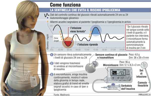 Lo Studio STAR 3 ha recentemente documentato che l’uso di sensori integrati alla terapia con microinfusore di insulina sia in adulti che in bambini con diabete di tipo 1 determina numerosi benefici, tra cui una riduzione 4 volte superiore del livello di emoglobina glicata rispetto alla terapia insulinica multi iniettiva ed un migliore controllo dei livelli di glucosio. Questi sistemi permettono di evitare eccessive escursioni glicemiche, con la riduzione di casi di ipoglicemie severe, specialmente notturne, migliorando la qualità di vita del paziente. Il sistema integrato avverte, infatti, con un segnale sonoro la discesa eccessiva dei livelli glicemici e, se il segnale venisse ignorato, sono in grado di sospendere l’erogazione di insulina, eliminando il rischio di crisi ipoglicemiche.