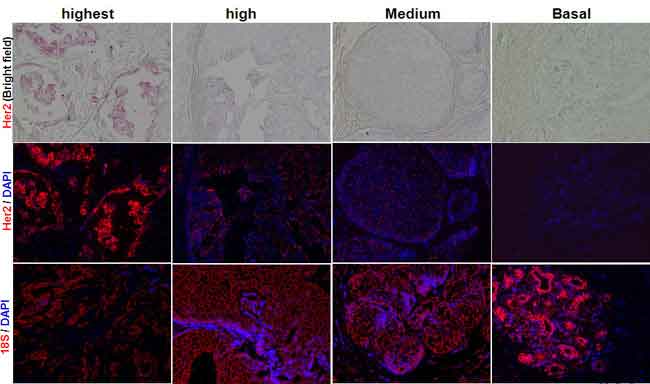 I ricercatori hanno sperimentato la tecnica su diverse linee di cellule tumorali che esprimono alti livelli di HER2, una proteina che, espressa in quantita’ troppo elevate, puo’ trasformare il tumore al seno nella sua forma piu’ aggressiva.