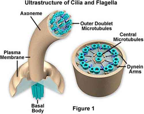 Questi flagelli sono molto piccoli ma, nonostante la loro taglia, i battiti ritmici che creano mentre fluttuano avanti e indietro possono generare del moto. Essi sono responsabili della propulsione di singole cellule come ad esempio il nuoto degli spermatozoi (la coda degli spermatozoi è il flagello), e il trasporto degli ovuli dalle ovaie all’utero, oltre ad altre funzioni vitali nel corpo umano.
