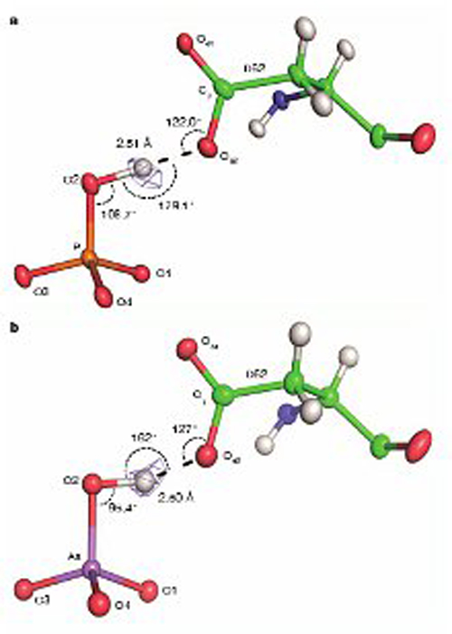 Analizzando ad altissima risoluzione le strutture che si creano quando le proteine si legano a un fosfato oppure a un arseniato, i ricercatori hanno stabilito che il modo in cui tutte queste proteine discriminano fra i due composti è sempre lo stesso, e si basa su una piccola alterazione delle dimensioni di un legame a idrogeno: una distorsione di appena il 4 per cento. In effetti, tutte le proteine testate hanno mostrato una certa capacità di discriminazione, benché vi siano variazioni minime della loro struttura, a seconda del ceppo batterico a cui appartengono, che influiscono drasticamente sulla loro selettività.
