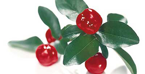 L’Acerola ha un frutto ovale di colore rosso intenso e dalla buccia sottile, simile alle ciliegie, anche se appartiene a tutt’altra specie. E proprio dai suoi frutti maturi, privi di nocciolo, si ricava un succo che viene concentrato e nebulizzato, fino ad ottenere un estratto ad altissimo contenuto di acido ascorbico, ossia la famosa vitamina C (fino al 25%).