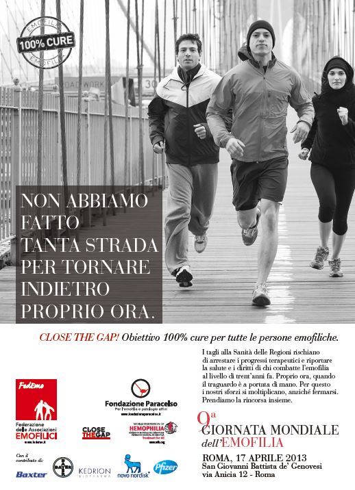 La FedEmo lo fa nel giorno in cui, in 113 Paesi, si celebra la nona Giornata Mondiale dell’Emofilia (GME 2013). Anche quest’anno lo slogan scelto dalla Federazione Mondiale dell’Emofilia (WFH) è ‘Close the gap’, motto che riassume l’obiettivo di promuovere pari livelli di trattamento e accesso ai farmaci per tutti i pazienti, indipendentemente dalla loro collocazione geografica.