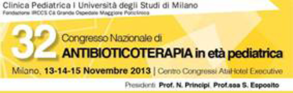 Antibioticoterapia In età pediatrica al via il 32° Congresso Nazionale – Milano 13-15 novembre 2013 Centro Congressi AtaHotel Executive