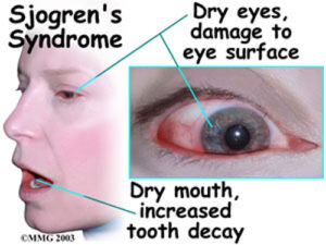 Si tratta di una malattia infiammatoria auto-immune in cui il sistema immunitario dell’organismo attacca le ghiandole che secernono fluidi come le lacrime e la saliva.