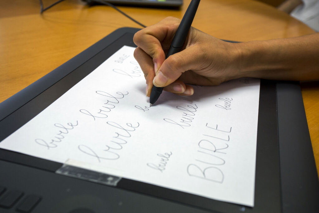 La ricerca ha coinvolto 77 bambini con un’età fra i 7 anni e mezzo e i 12 anni: 17 bambini con una diagnosi di dislessia evolutiva, 21 bambini con una diagnosi sia di dislessia sia di disgrafia e 39 bambini a sviluppo tipico (ovvero senza diagnosi di dislessia o disgrafia). Ai partecipanti è stato chiesto di scrivere a mano con un’apposita penna digitale la parola b-u-r-l-e in diverse condizioni sperimentali (in modo spontaneo, usando lettere maiuscole, accelerando la velocità di scrittura o cambiando le dimensioni) su un foglio appoggiato su una tavoletta grafica.